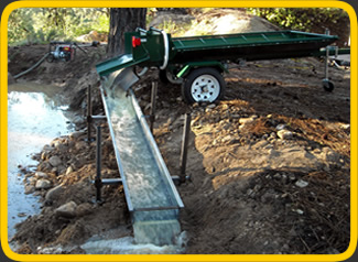 Golden Retriever If your going to make the move from Hobbyist to making a Living at Placer Mining, your next step could be the difference between success and failure. Retreiver Wash PlantTrommelTrommelWash PlantWash Plant-Gold Some of the common mistakes made by those making the leap is to: · Buy / File on an untested (unproven) Claim, or take some ones word for it. · Under - estimate the amount of work and expense that lies ahead. · Plan for the unexpected , and …… · SPEND TOO MUCH MONEY ON OVERSIZED AND WORN OUT USED EQUIPMENT. This Highly Portable, Small Wash Plant can process 5 yards and hour (Dry) and 8 yards an hour (Wet). It can be fed with a small (Kabota type) tractor / loader or a Skid Steer. It Vibrates, washes, screens and delivers pay dirt to the extra long (fully adjustable) Sluice that recovers extremely fine Gold and other Heavy Metals. It can be towed to the work site at Highway Speeds and moved by loader or ATV into position for processing material. It comes complete with Fenders and Lights so it’s “Street Legal”. Your Bottom Line Profit will DEPEND on the amount of material you can process and Values recovered in relation to your investment in equipment. Golden Retriever SHINES at all three ! Golden Retriever Base Model (GRtWP)